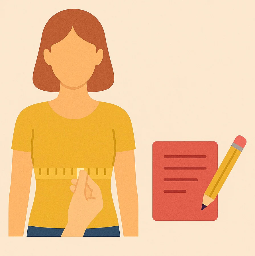Ruban de mesure, fiche de mesure, crayon textile, miroirโฆ