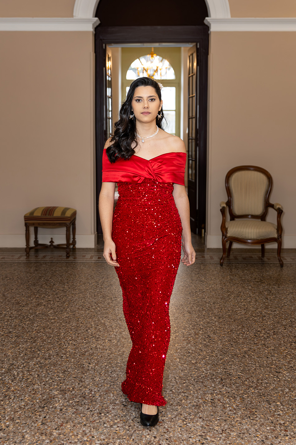 Le velours pailleté et la mousseline de soie : un duo de matières précieuses