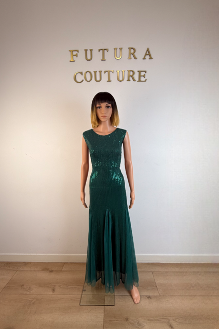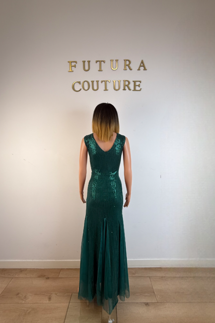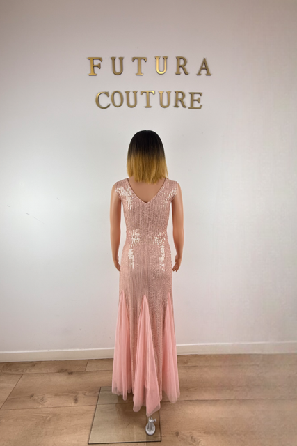 Comme un conte des Mille et Une Nuits réinventé, la robe Vœu de Désir illumine la soirée de ses éclats étincelants. Déclinée en rose tendre ou en vert profond, elle capture la lumière sous chaque mouvement grâce à son lycra pailleté qui pare le corps d’un voile scintillant.